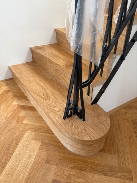 Dubové duoparkety v nejlepším třídění natur a dubové schody s okrouhlým schodem