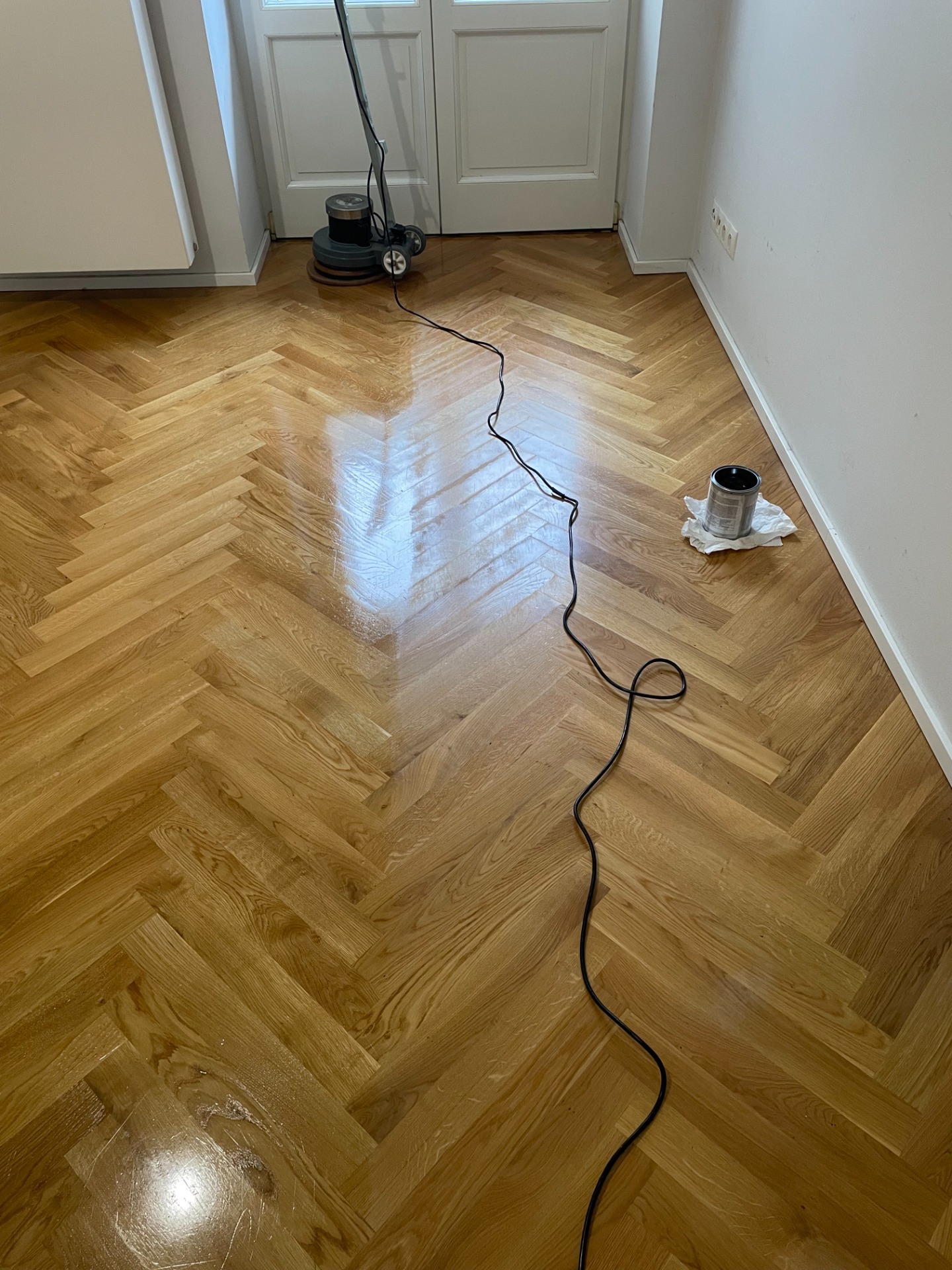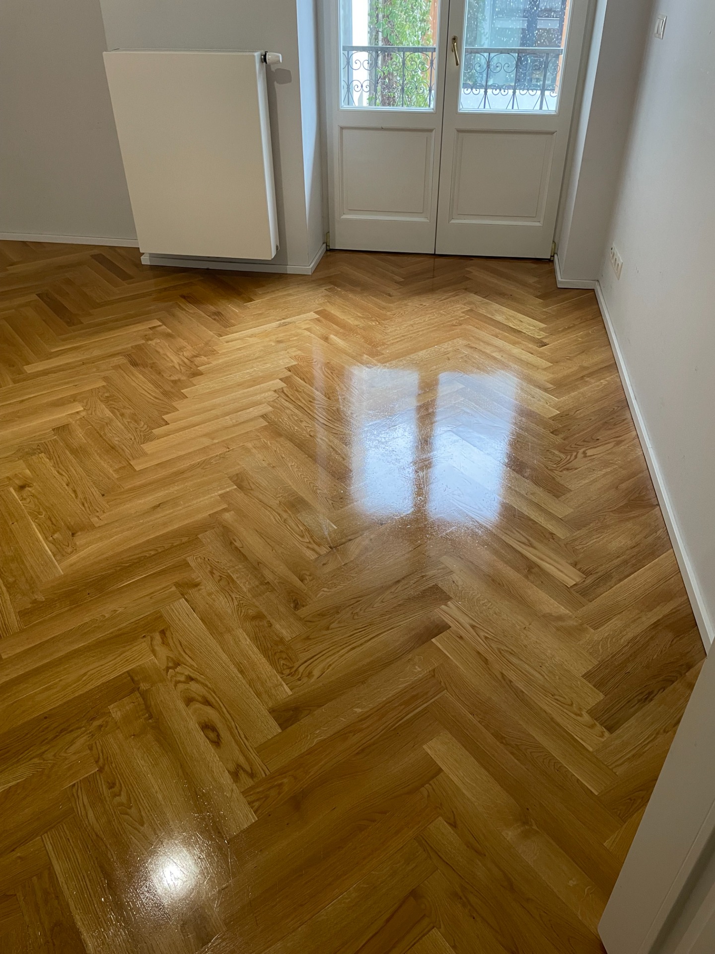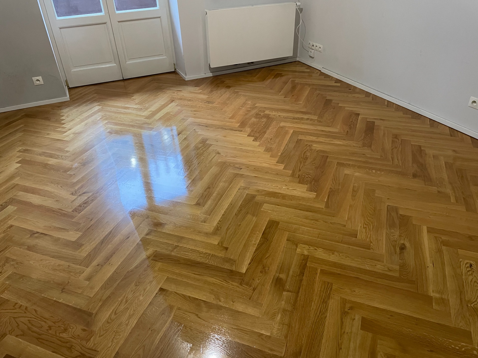 Lakovaná podlaha taky potřebuje pravidelnou péči a po přeleštění vypadá jako nová.